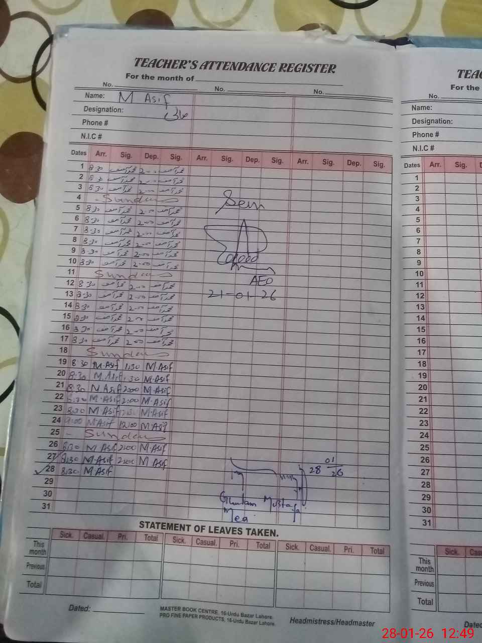 | Name: Fo**** Designation: (School Headmaster's/Headmistress's) SST ARTS Phone/Cell Number: 03**** |