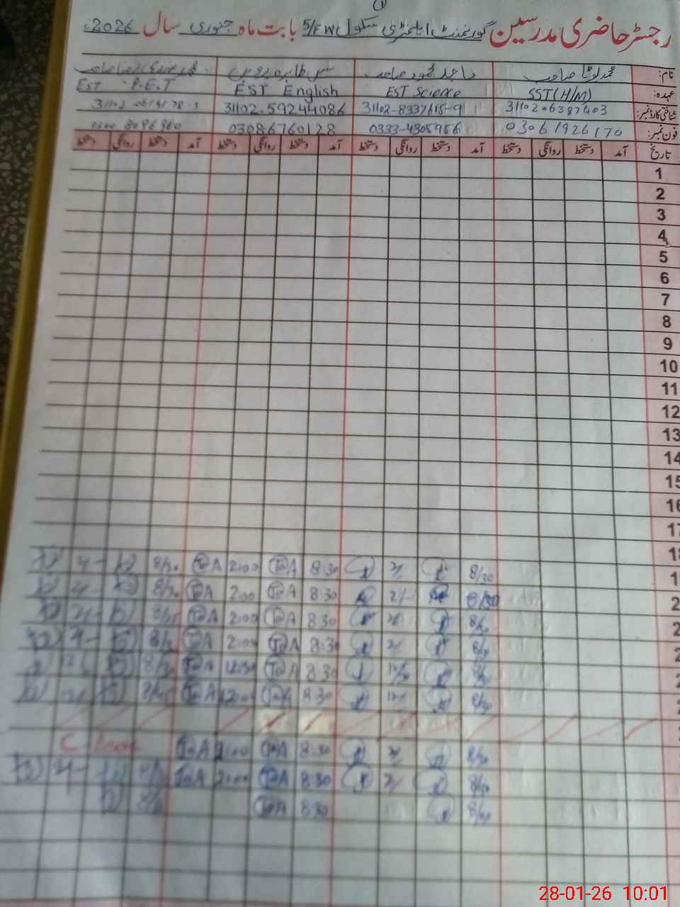 | Name: Ma**** Me**** Designation: (School Headmaster's/Headmistress's) EST Sce Phone/Cell Number: 03**** |