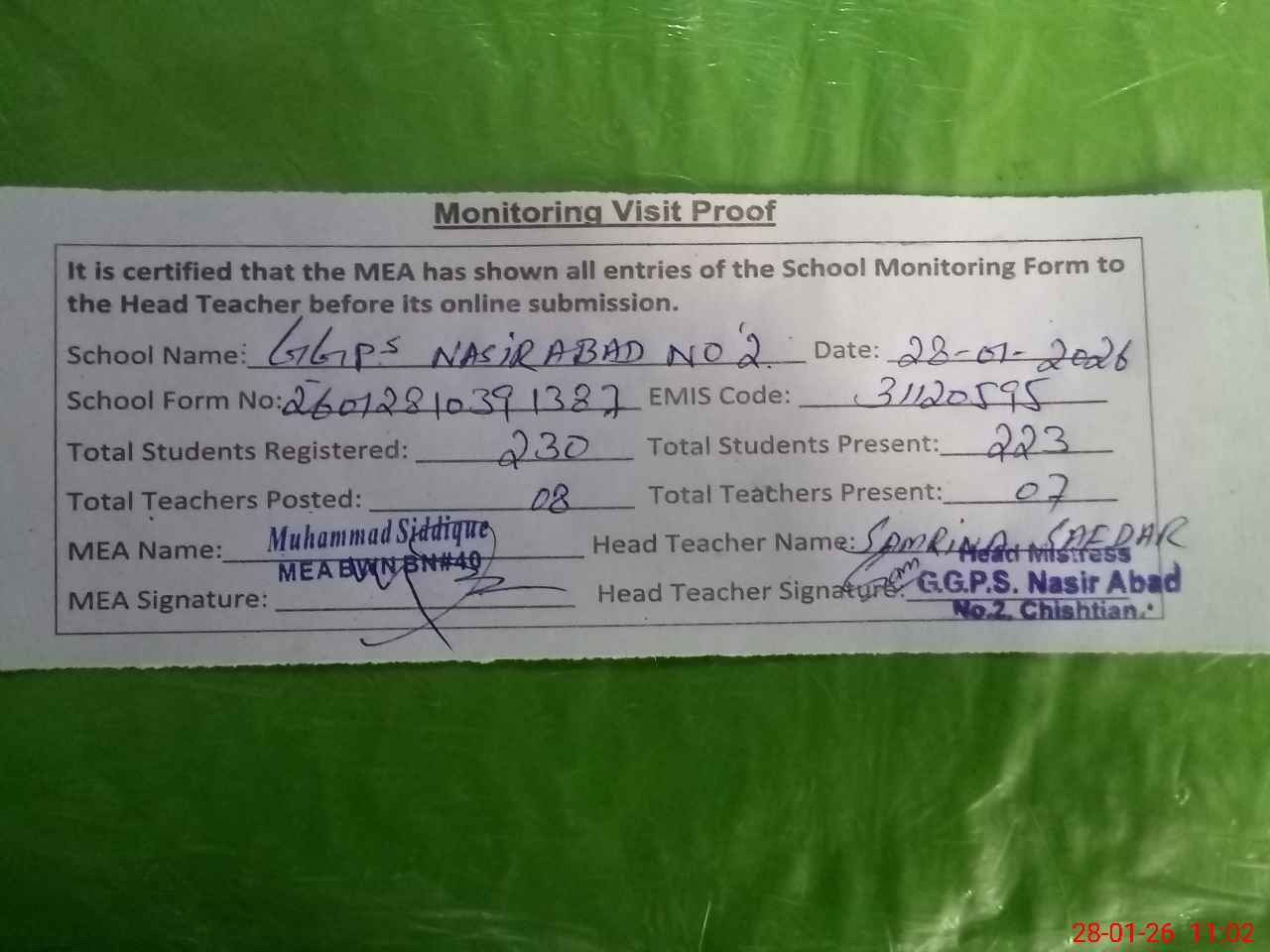 | EMIS Code: 31120595 | Name of School: GGPS NASIRABAD NO. 2 | |||