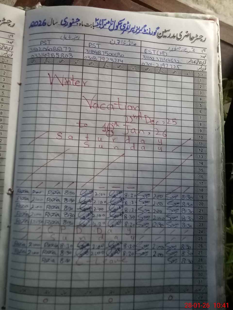 | 31**** | Sa**** Kh**** | PST Science/Maths | Regular | 1 | 0 | 0 | 0 | 0 | 0 | 0 | 0 | 1 | Casual |