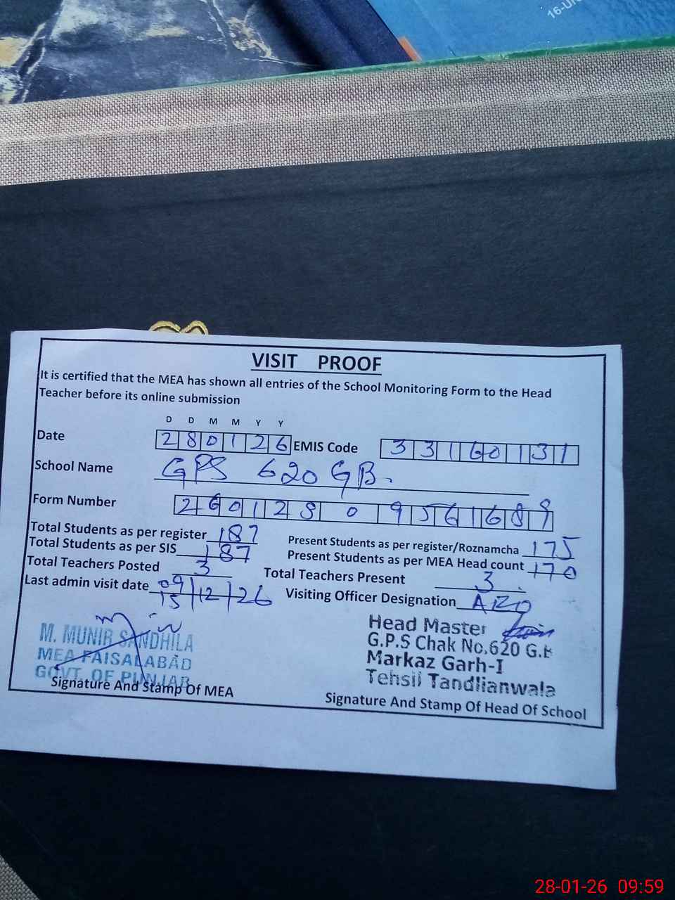 | EMIS Code: 33160131 | Name of School: GPS CHAK 620 GB TANDLIANWALA | |||