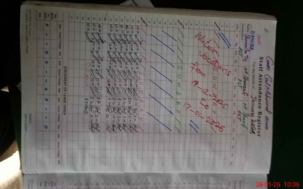 | 31**** | Mo**** Sh**** | PST Arts | Regular | 1 | 0 | 0 | 0 | 0 | 0 | 0 | 0 | 1 | Casual |