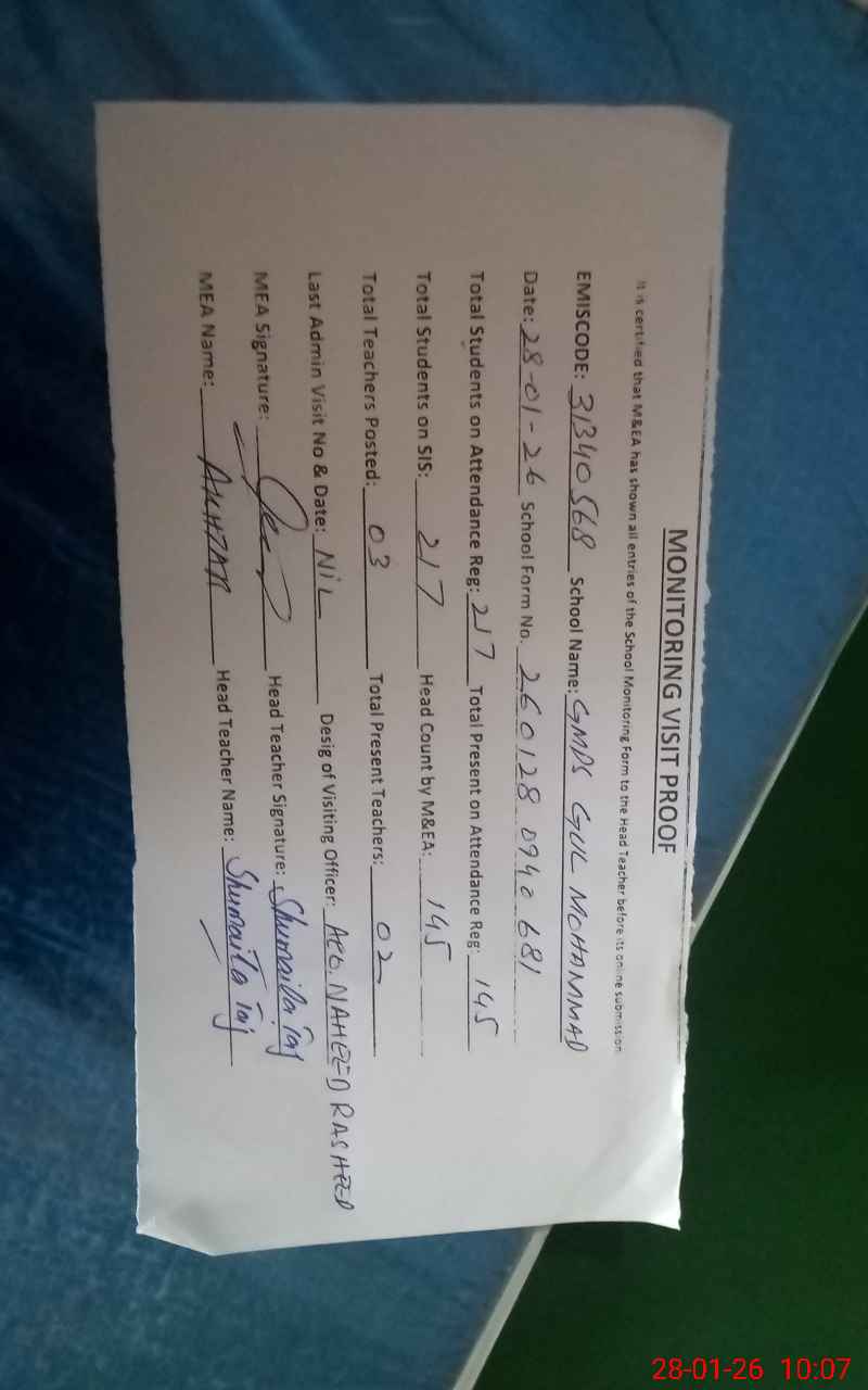 | EMIS Code: 31340568 | Name of School: GMPS GUL MUHAMMAD | |||