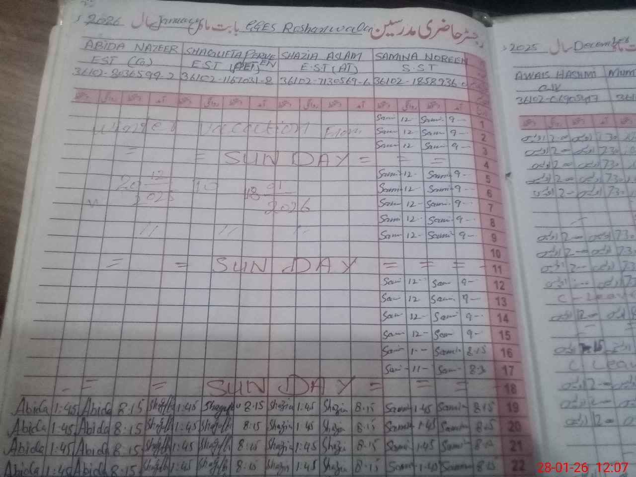| CNIC | Full Name | Designation | R/C | Absence During Last Calender Month |