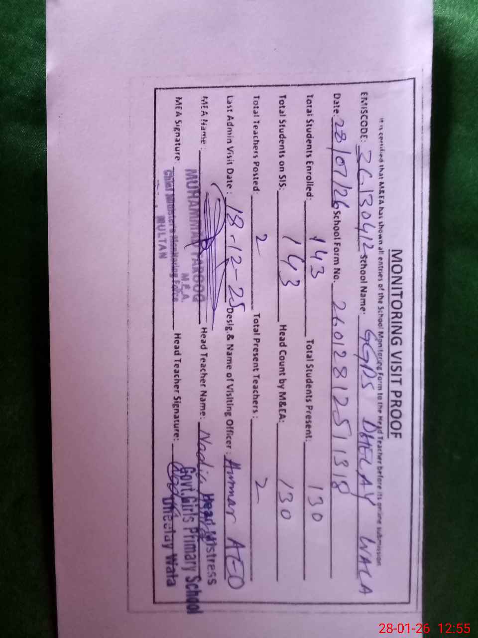 | EMIS Code: 36130412 | Name of School: GGPS DHELAY WALA QADIRPUR RAN MULTAN | |||