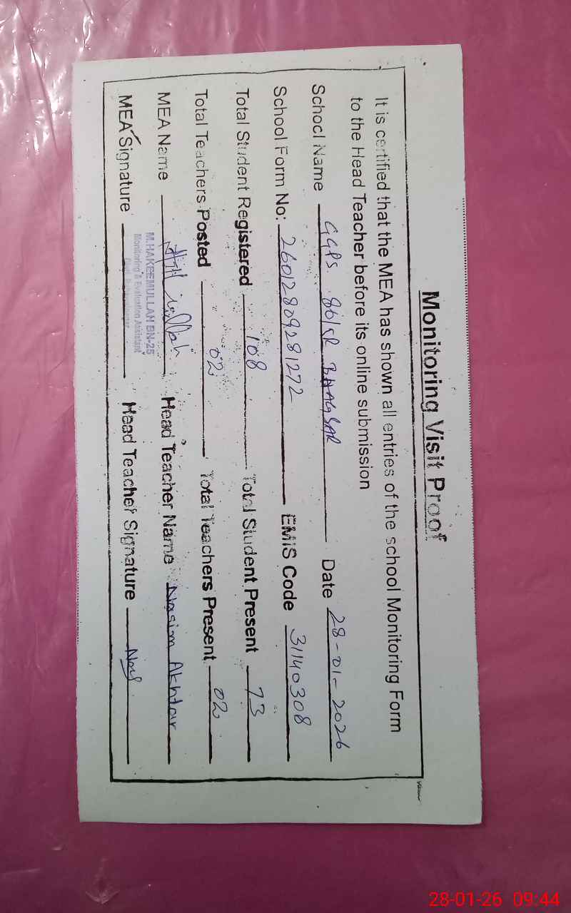 | Certified that this School was Inspected by the Undersigned MEA/DMO Today and the Information Stated Above is as Per Record. | |||||