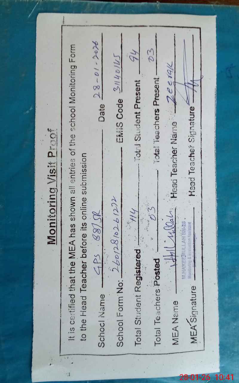 | Certified that this School was Inspected by the Undersigned MEA/DMO Today and the Information Stated Above is as Per Record. | |||||