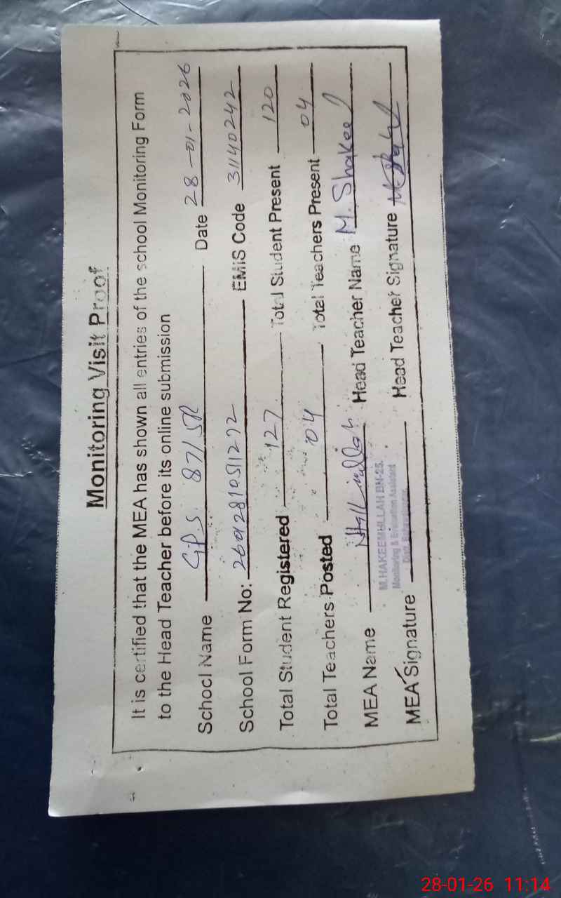 | Attendance Register | Head Teacher | MEA with School | Visit Proof |