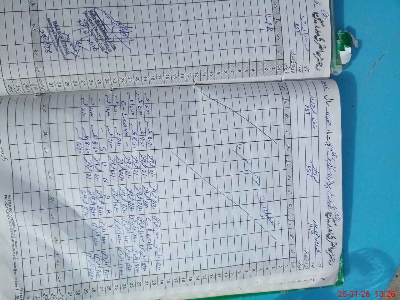 | CNIC | Full Name | Designation | R/C | Absence During Last Calender Month |