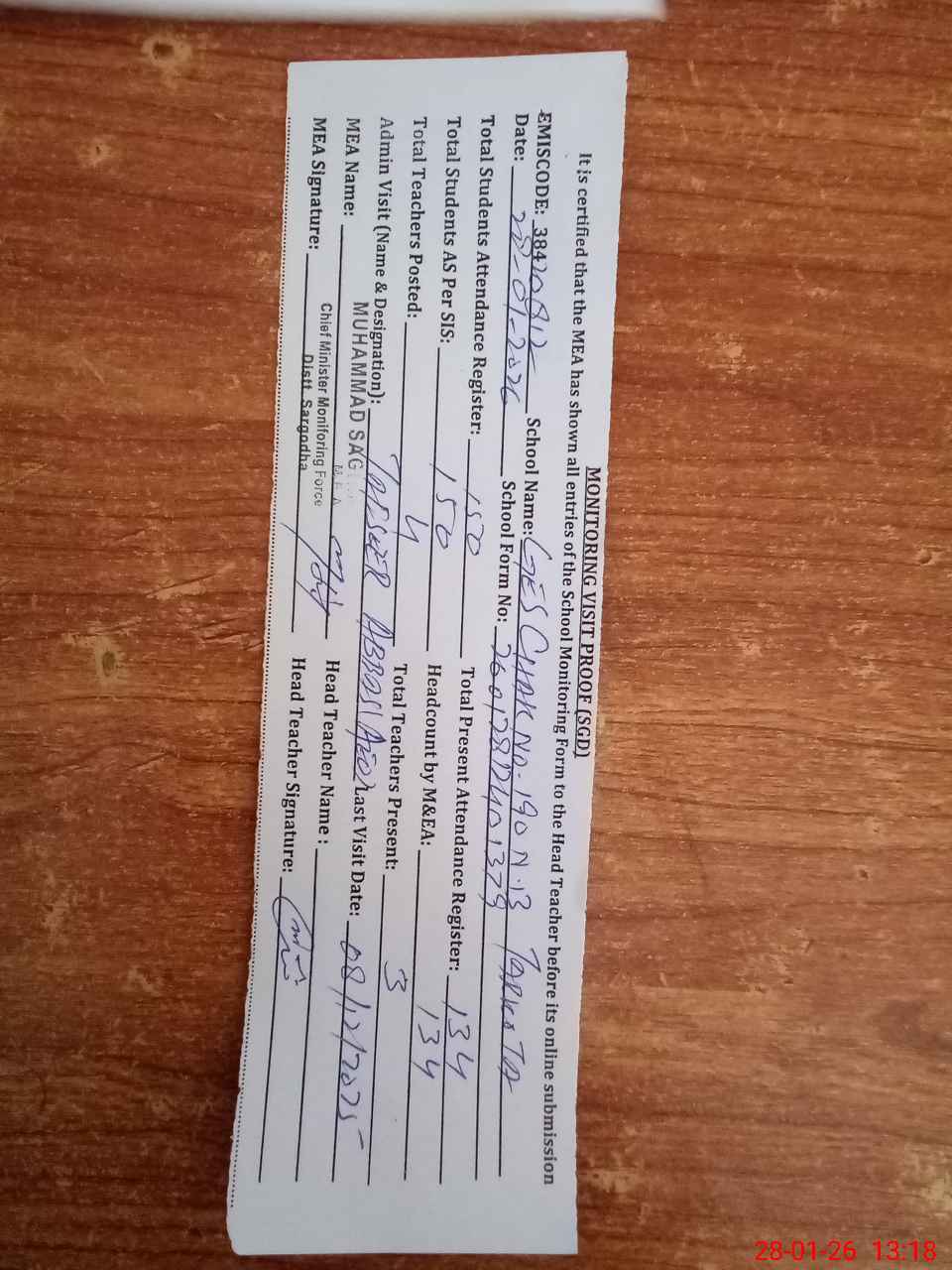 | EMIS Code: 38420812 | Name of School: GES CHAK NO.190 NB TARKOTA | |||