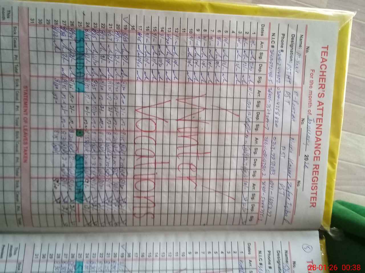| Name: MU**** YA**** Designation: (School Headmaster's/Headmistress's) PST Phone/Cell Number: 03**** |
