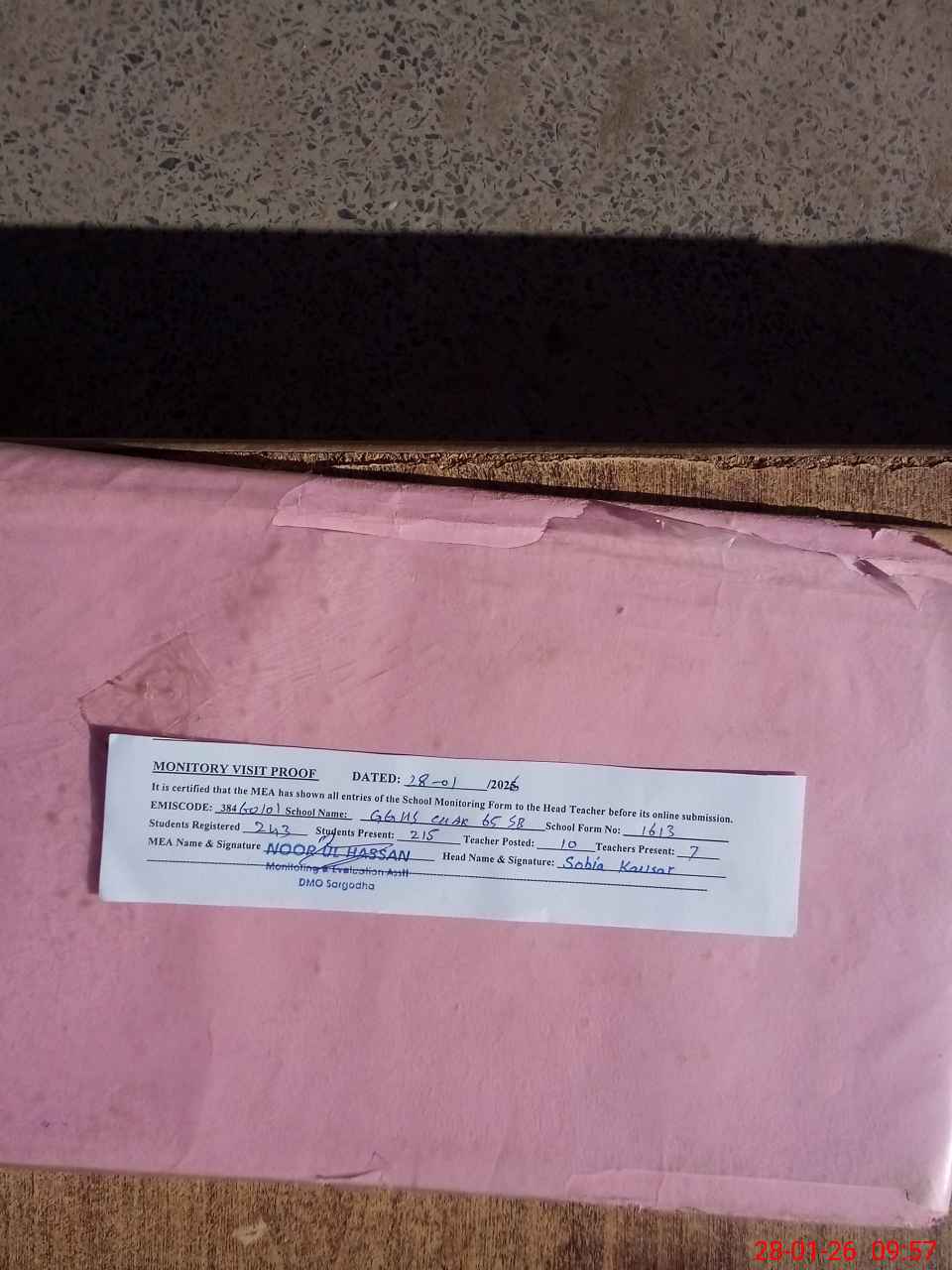 | Attendance Register | Head Teacher | MEA with School | Visit Proof |