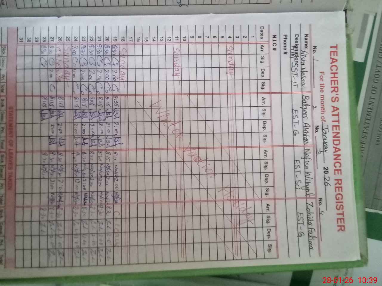 | 35**** | Na**** Ra**** | PST Science/Maths | Regular | 1 | 0 | 0 | 0 | 0 | 0 | 0 | 0 | 1 | Absent (Un-Authorized) |