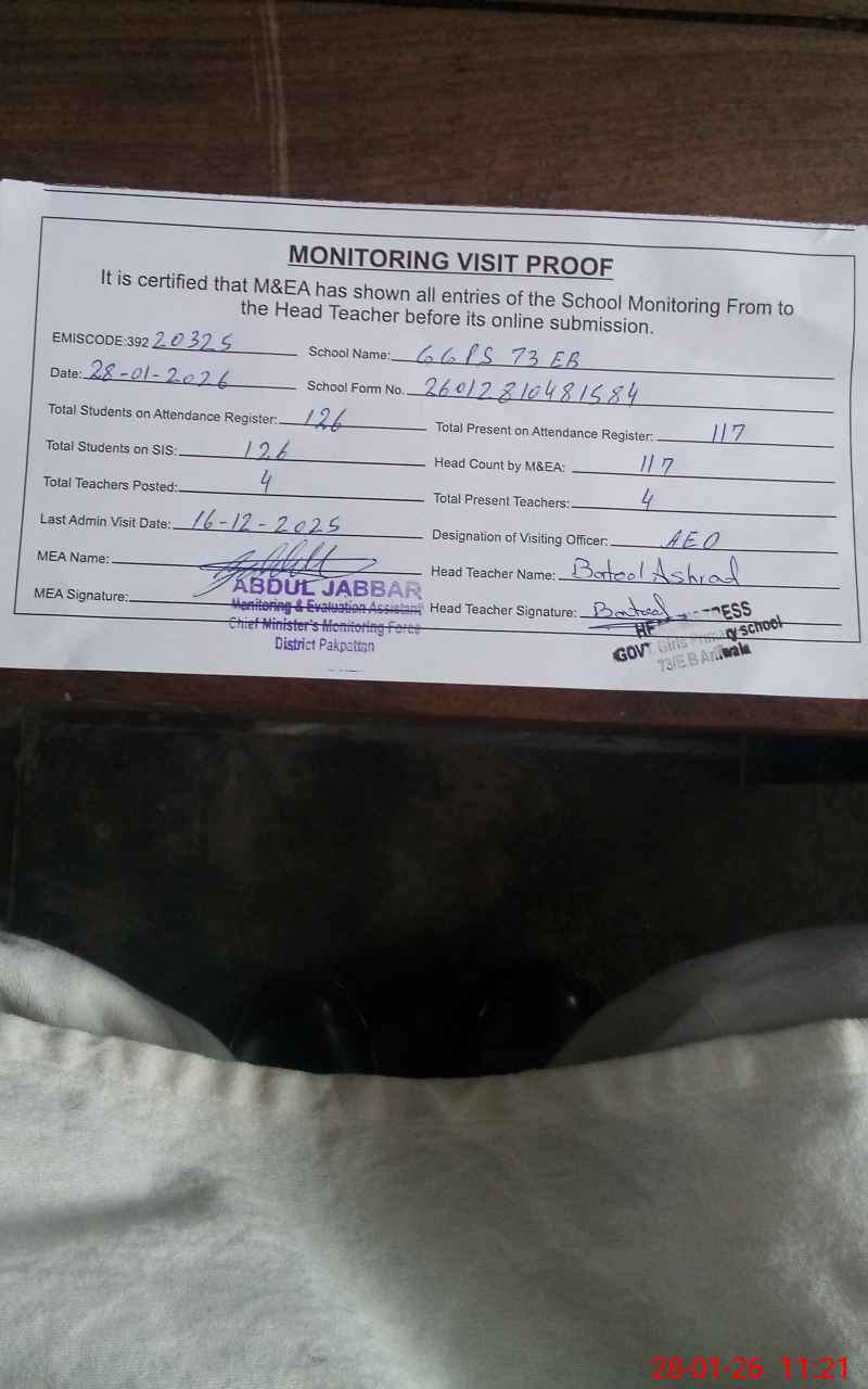 | EMIS Code: 39220325 | Name of School: GGPS 73 EB | |||