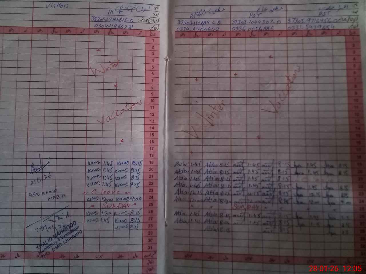 | CNIC | Full Name | Designation | R/C | Absence During Last Calender Month |
