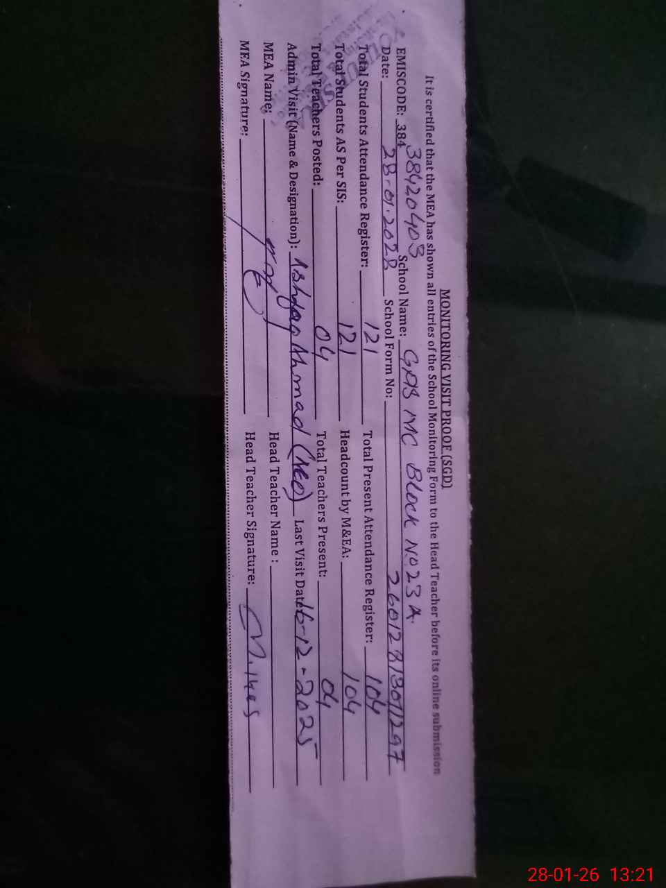 | EMIS Code: 38420403 | Name of School: GPS MC BLOCK NO.23-A SARGODHA | |||
