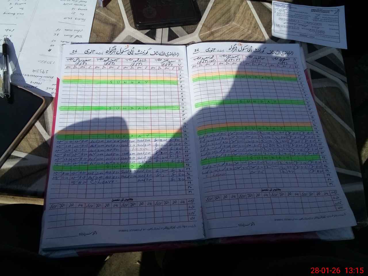 | CNIC | Full Name | Designation | R/C | Absence During Last Calender Month |