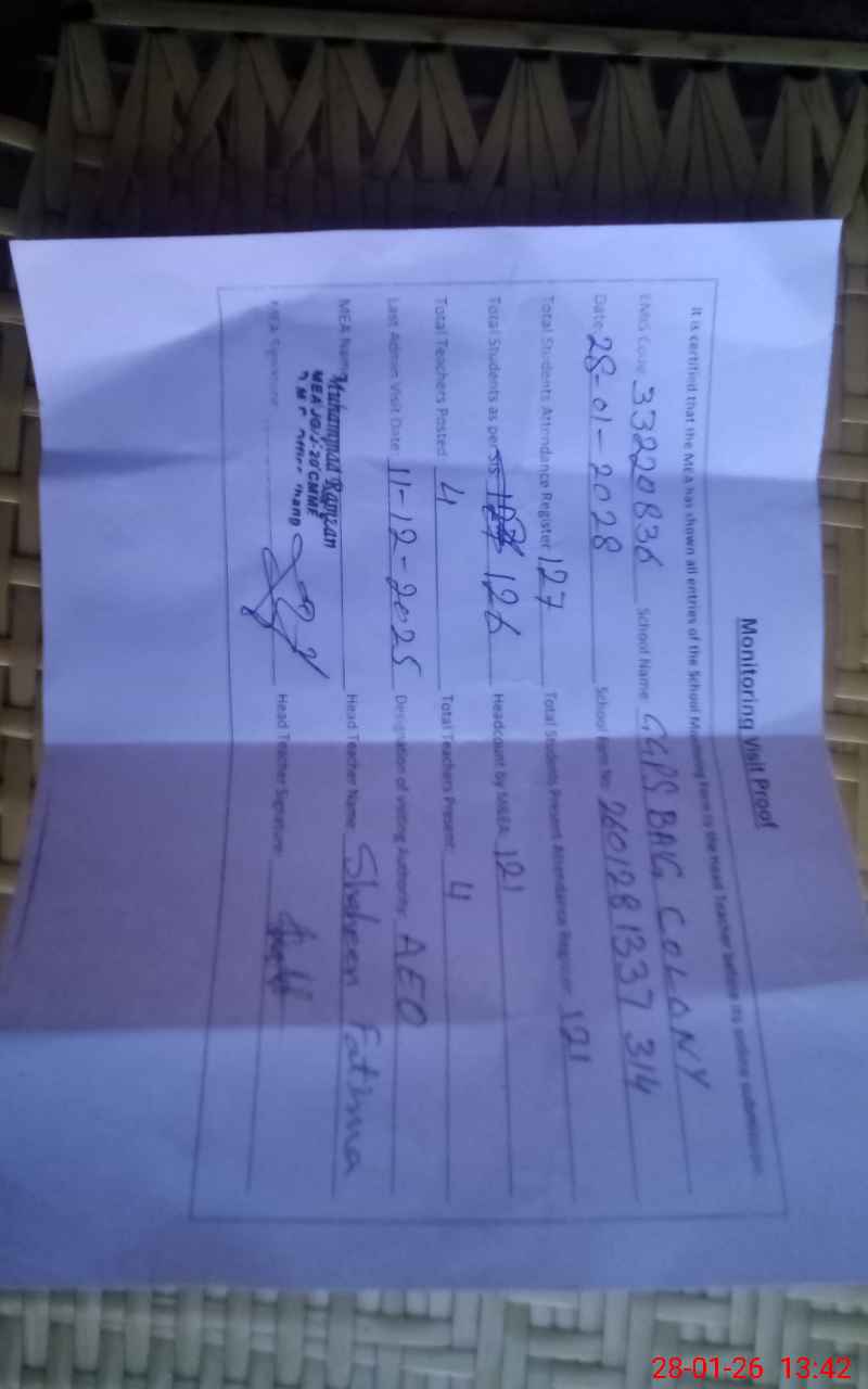 | EMIS Code: 33220836 | Name of School: GGPS BAIG COLONY | |||