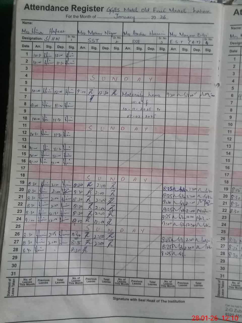 | Name: Hi**** Ha**** Designation: (School Headmaster's/Headmistress's) Snr Head Mistress Phone/Cell Number: 03**** |