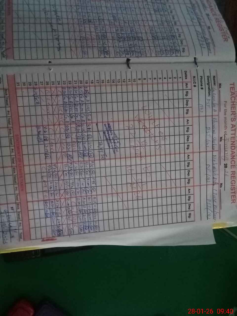 | CNIC | Full Name | Designation | R/C | Absence During Last Calender Month |