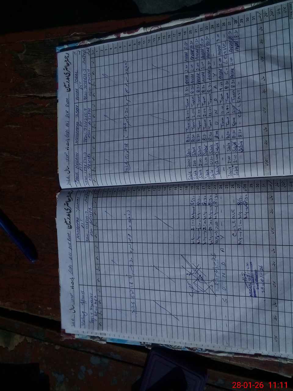 | CNIC | Full Name | Designation | R/C | Absence During Last Calender Month |