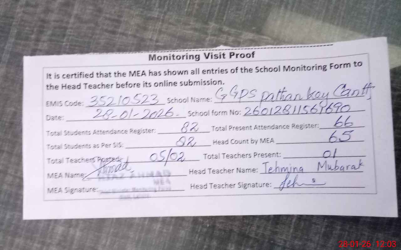 | Attendance Register | Head Teacher | MEA with School | Visit Proof |