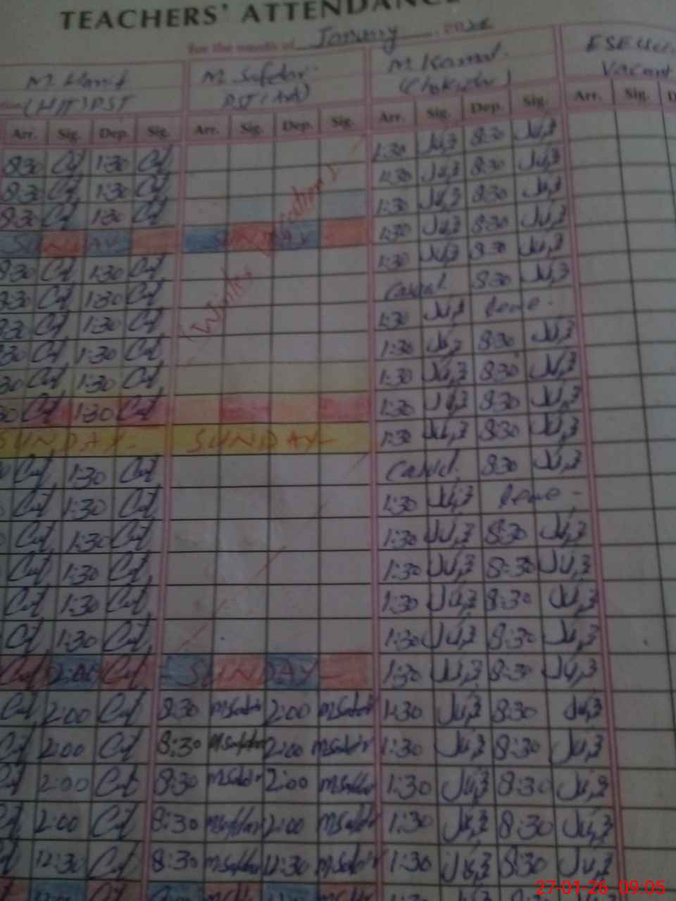 | Monitoring Date: 27-01-2026 | Start Time: 27-01-2026 09:03 AM | End Time: 27-01-2026 09:39 AM | Name of MEA: MU**** AT**** KH**** | |