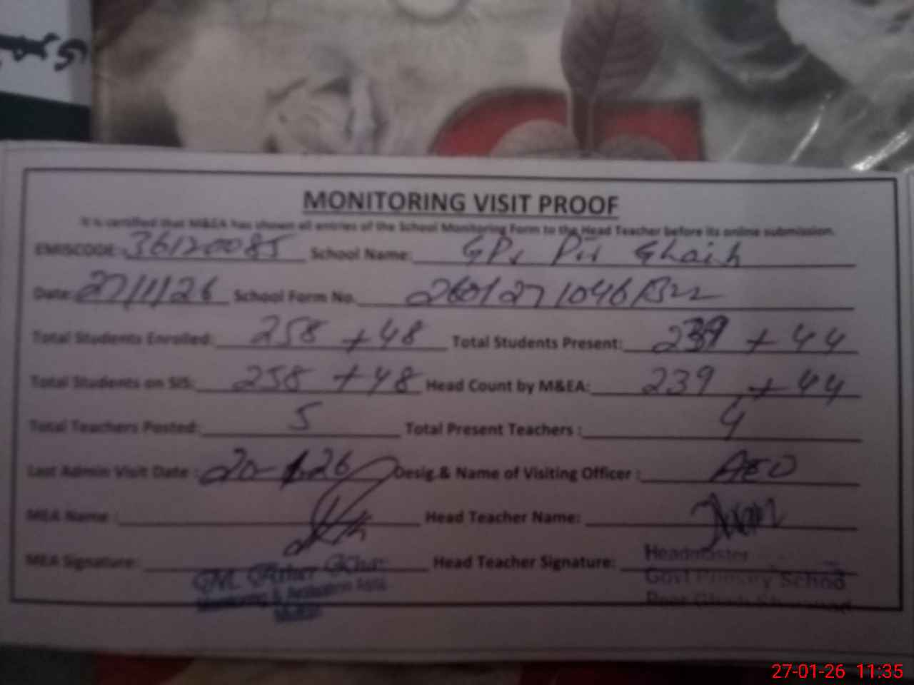 | EMIS Code: 36120085 | Name of School: GPS PIR GHAIB P/O PIR GHAIB MOUZA HILAL WAJEH | |||