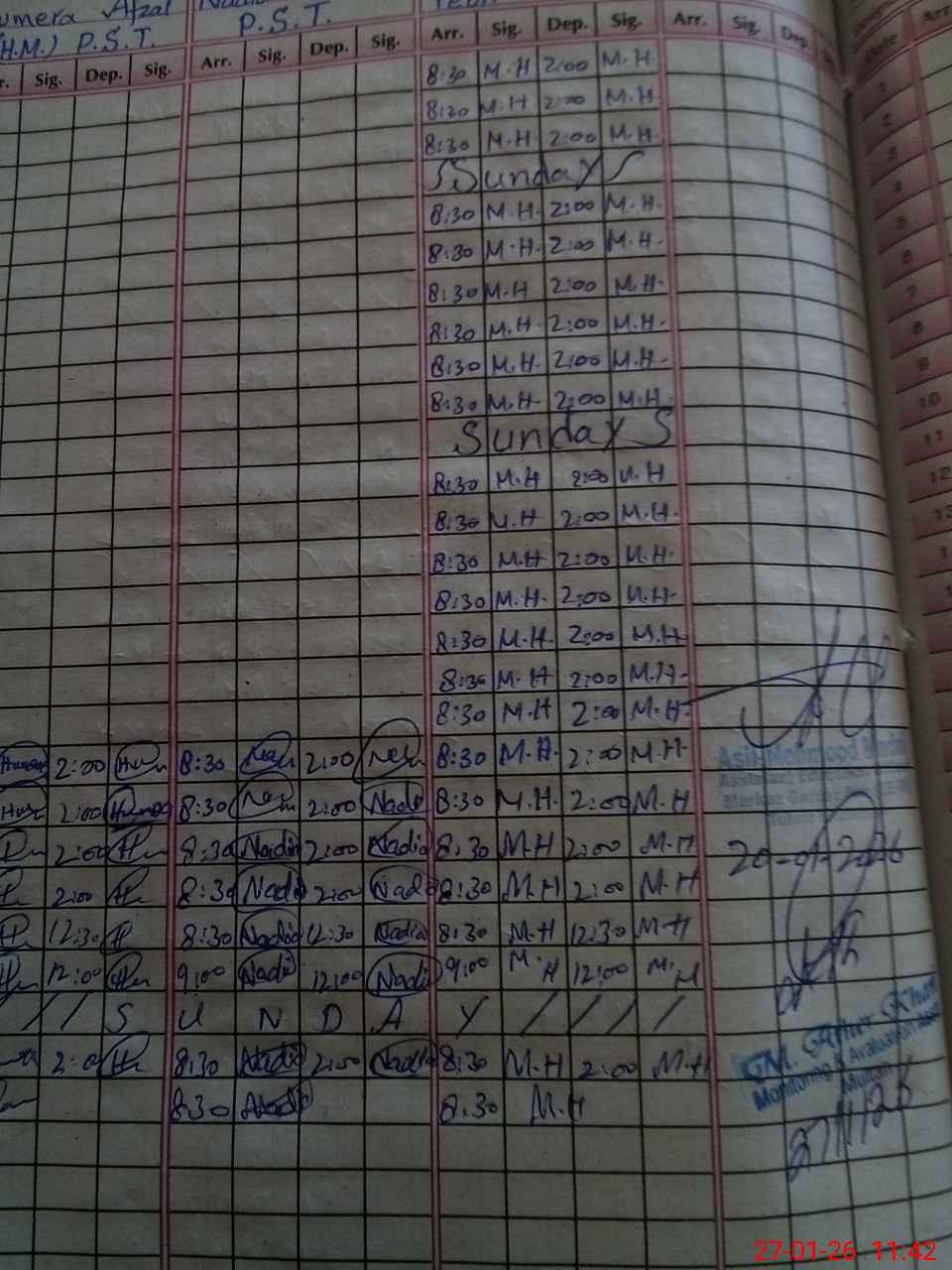 | CNIC | Full Name | Designation | R/C | Absence During Last Calender Month |