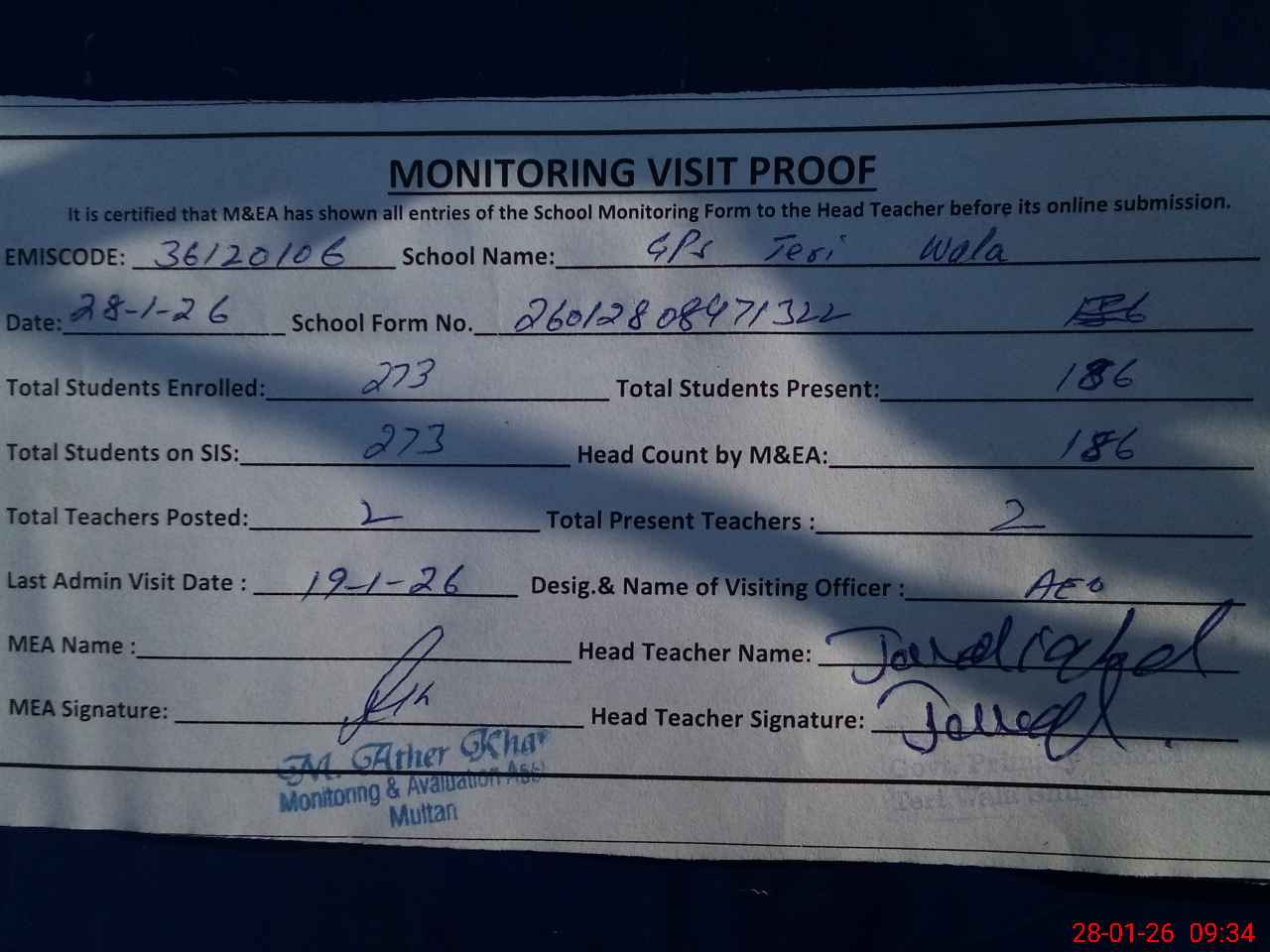 | EMIS Code: 36120106 | Name of School: GPS TERI WALA VILLAGE GANWEN SHUJABAD | |||