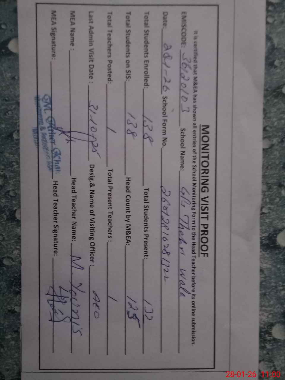 | EMIS Code: 36120103 | Name of School: GPS THEHRI WALA P/O LASURI MOZA PUNJANI | |||