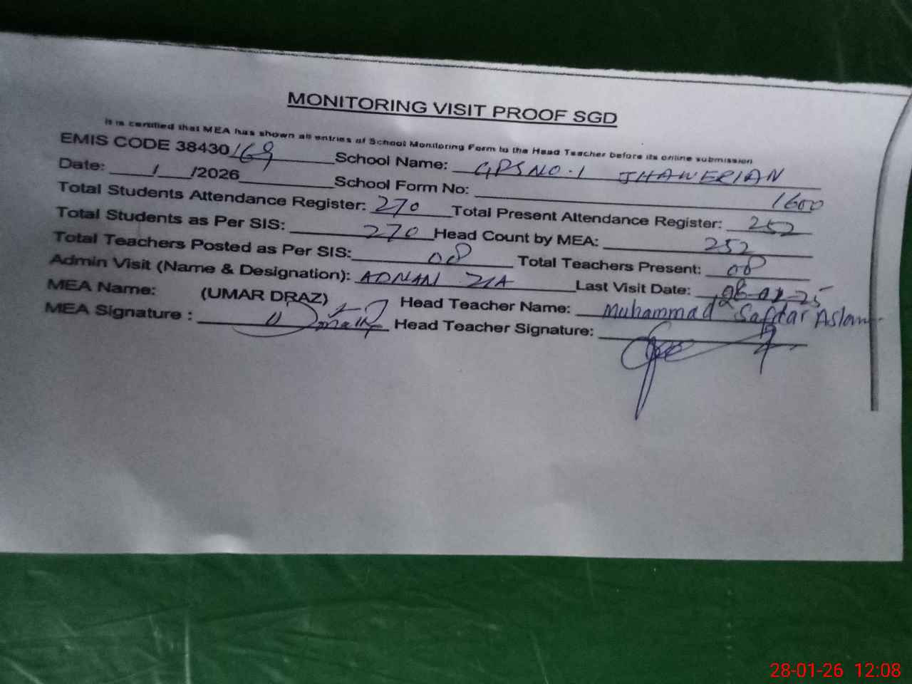 | EMIS Code: 38430169 | Name of School: GPS NO. 1 JHAWARIAN | |||