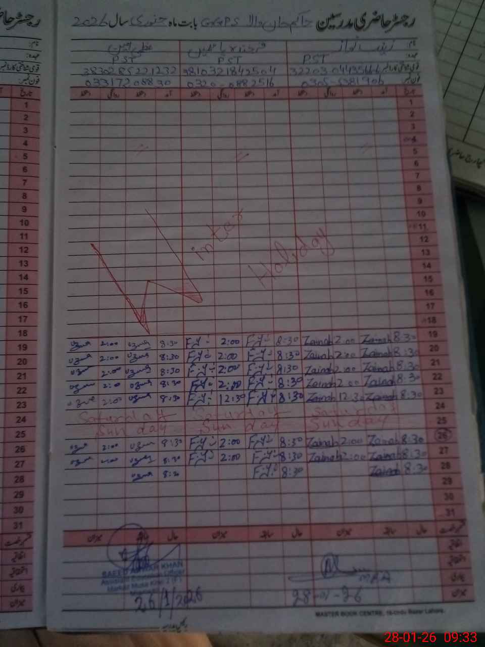 | Name: ZA**** NA**** Designation: (School Headmaster's/Headmistress's) PST Phone/Cell Number: 03**** |