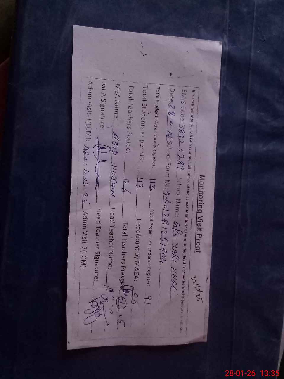 | EMIS Code: 38320289 | Name of School: GPS YARI KHEL | |||