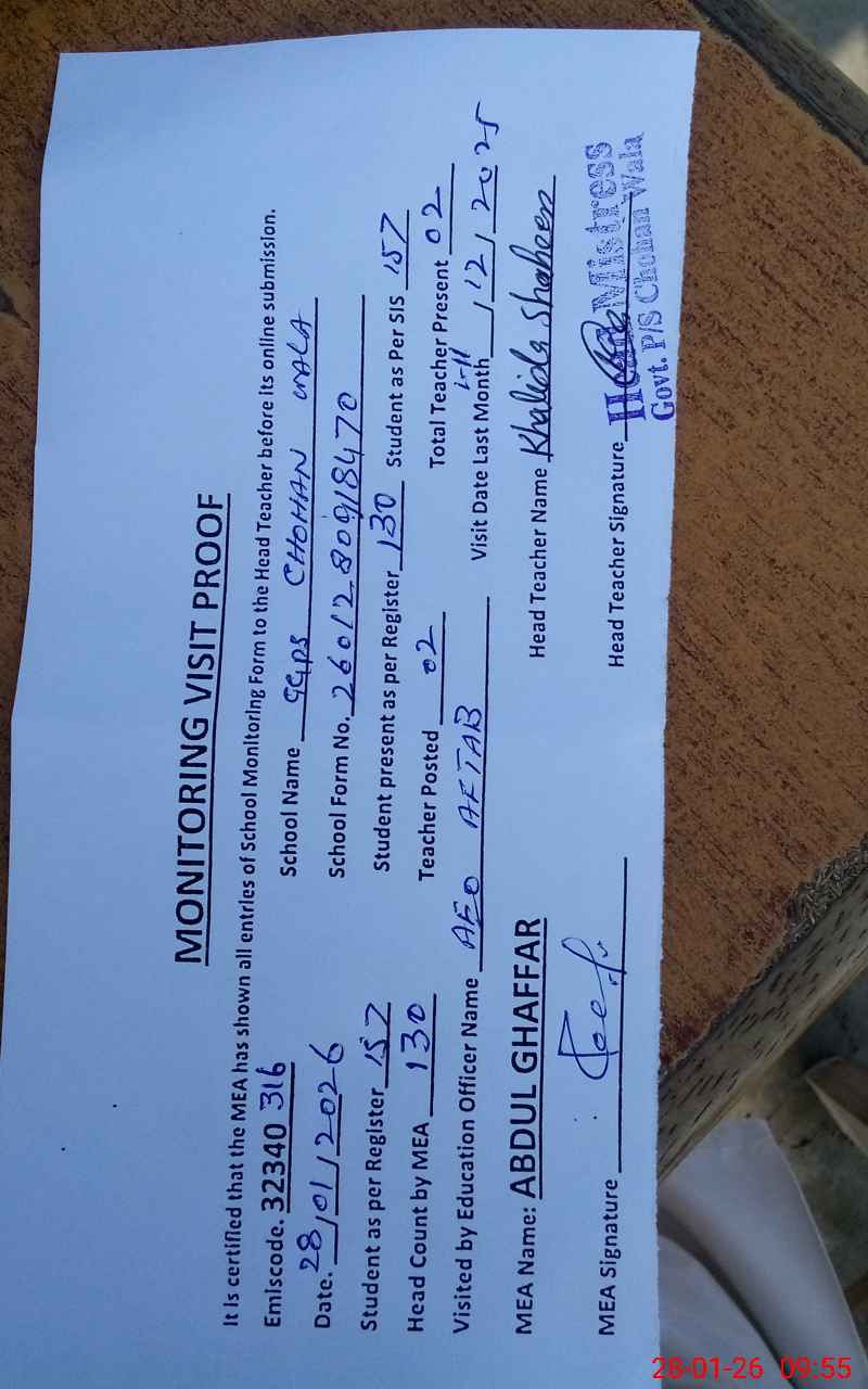 | EMIS Code: 32340316 | Name of School: GGPS CHOHAN WALA | |||