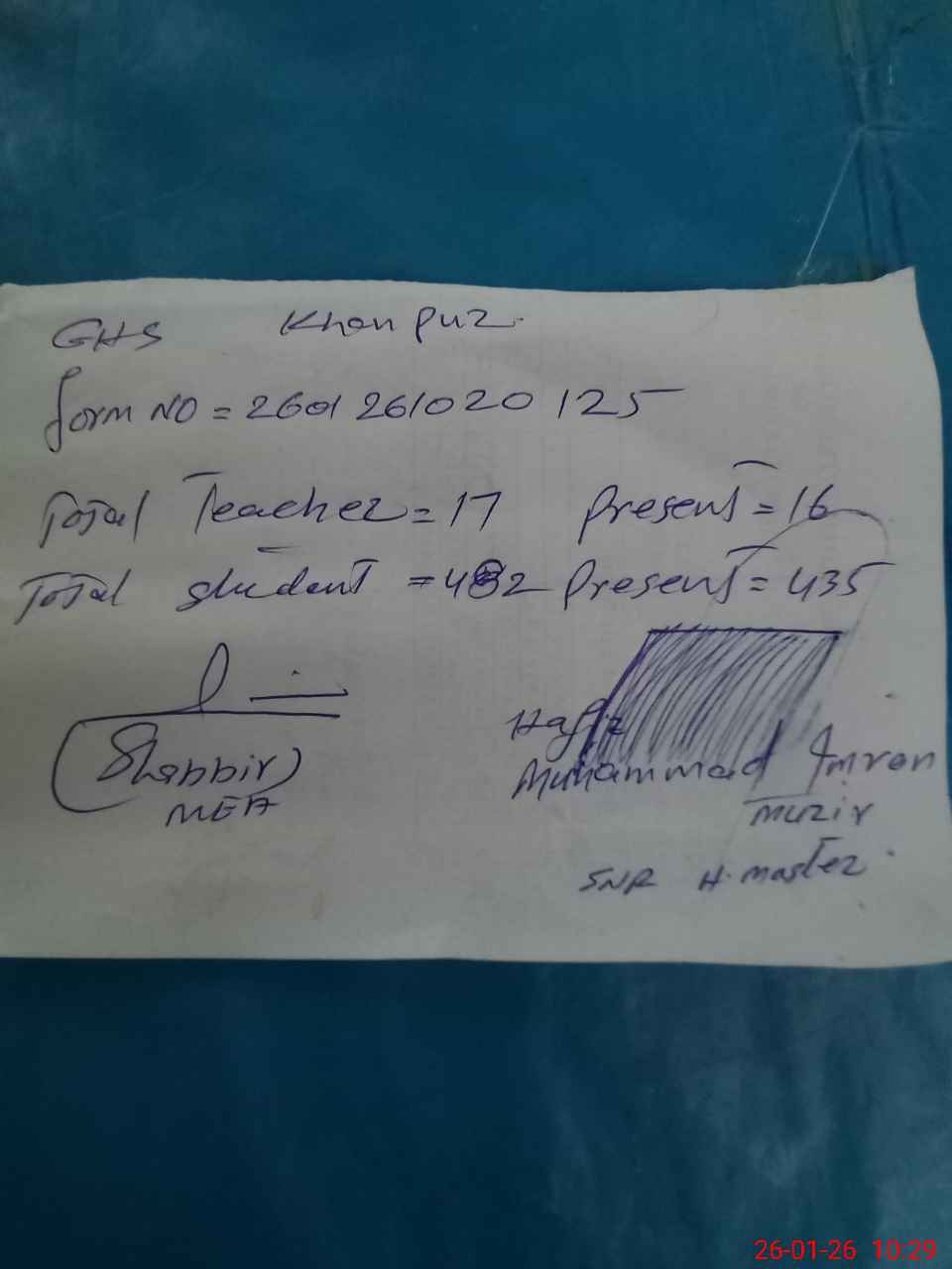 | Name: Mu**** Im**** Mu**** Designation: (School Headmaster's/Headmistress's) Snr .Headmaster Phone/Cell Number: 03**** |