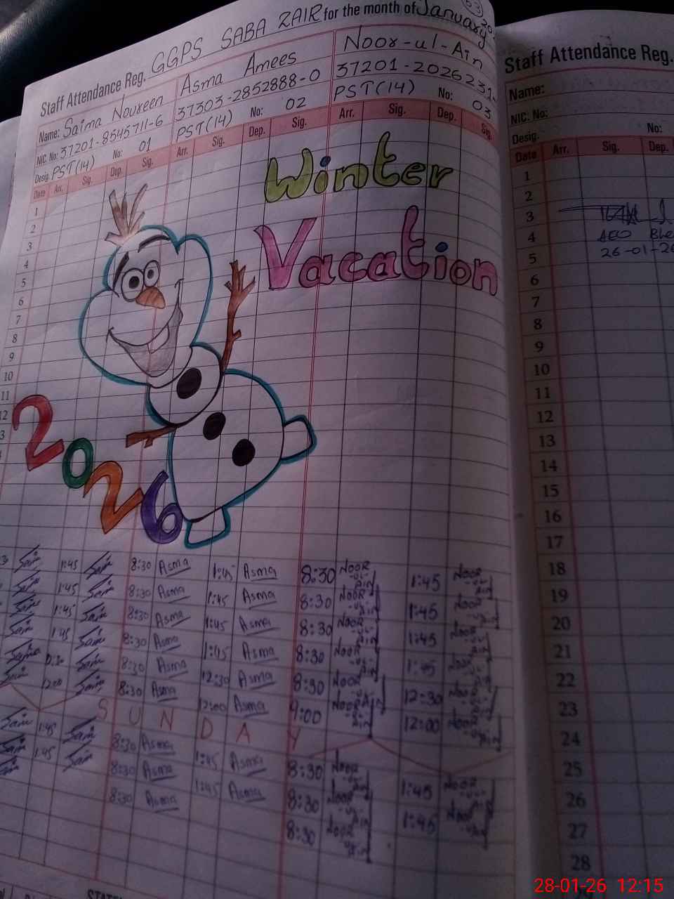 | CNIC | Full Name | Designation | R/C | Absence During Last Calender Month |