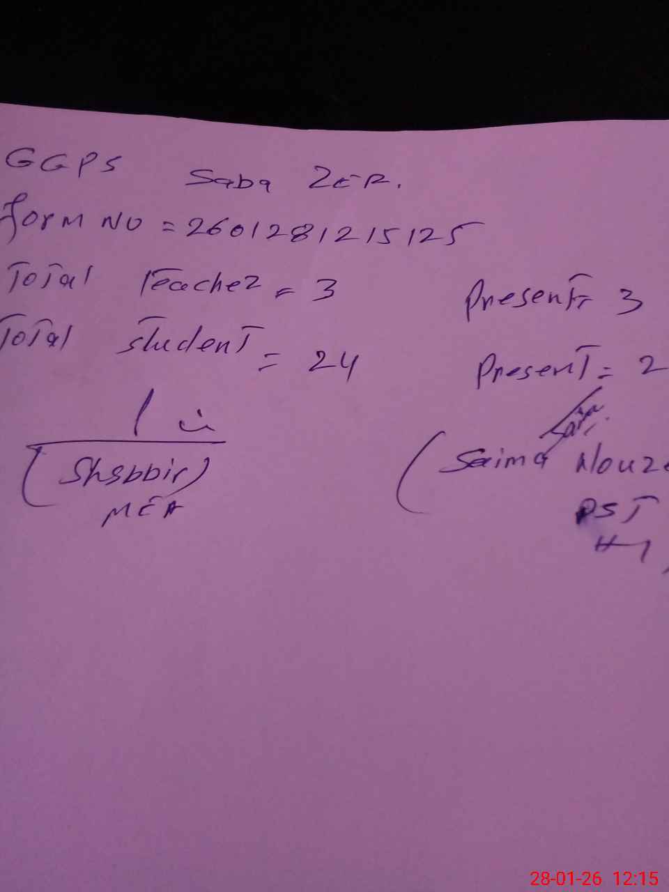 | Name: Sa**** No**** Designation: (School Headmaster's/Headmistress's) HEADMISTRESS Phone/Cell Number: 03**** |