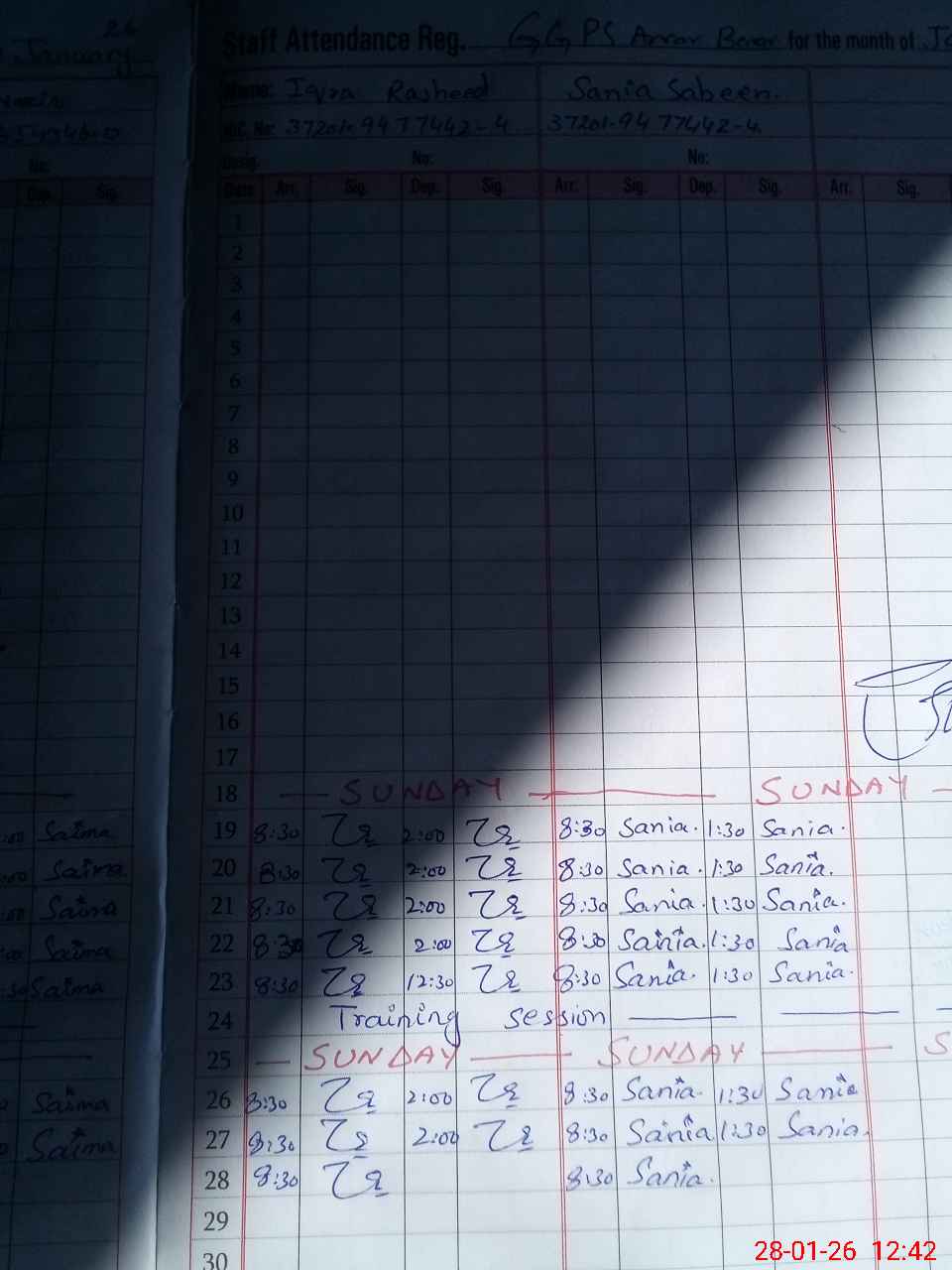 | CNIC | Full Name | Designation | R/C | Absence During Last Calender Month |