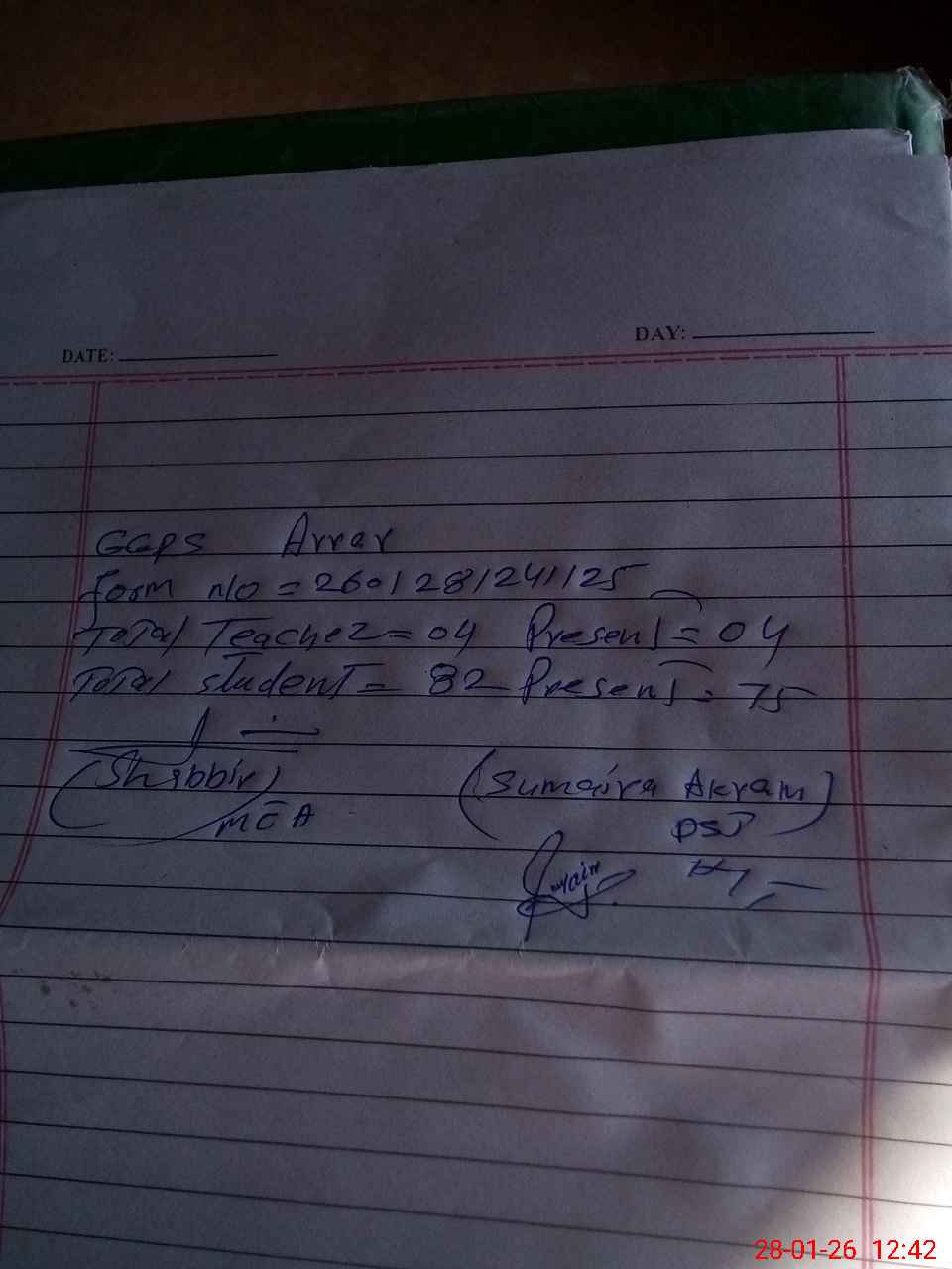 | Attendance Register | Head Teacher | MEA with School | Visit Proof |