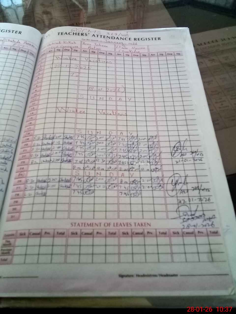 | Monitoring Date: 28-01-2026 | Start Time: 28-01-2026 10:18 AM | End Time: 28-01-2026 10:41 AM | Name of MEA: Kh**** Sa**** Hu**** | |