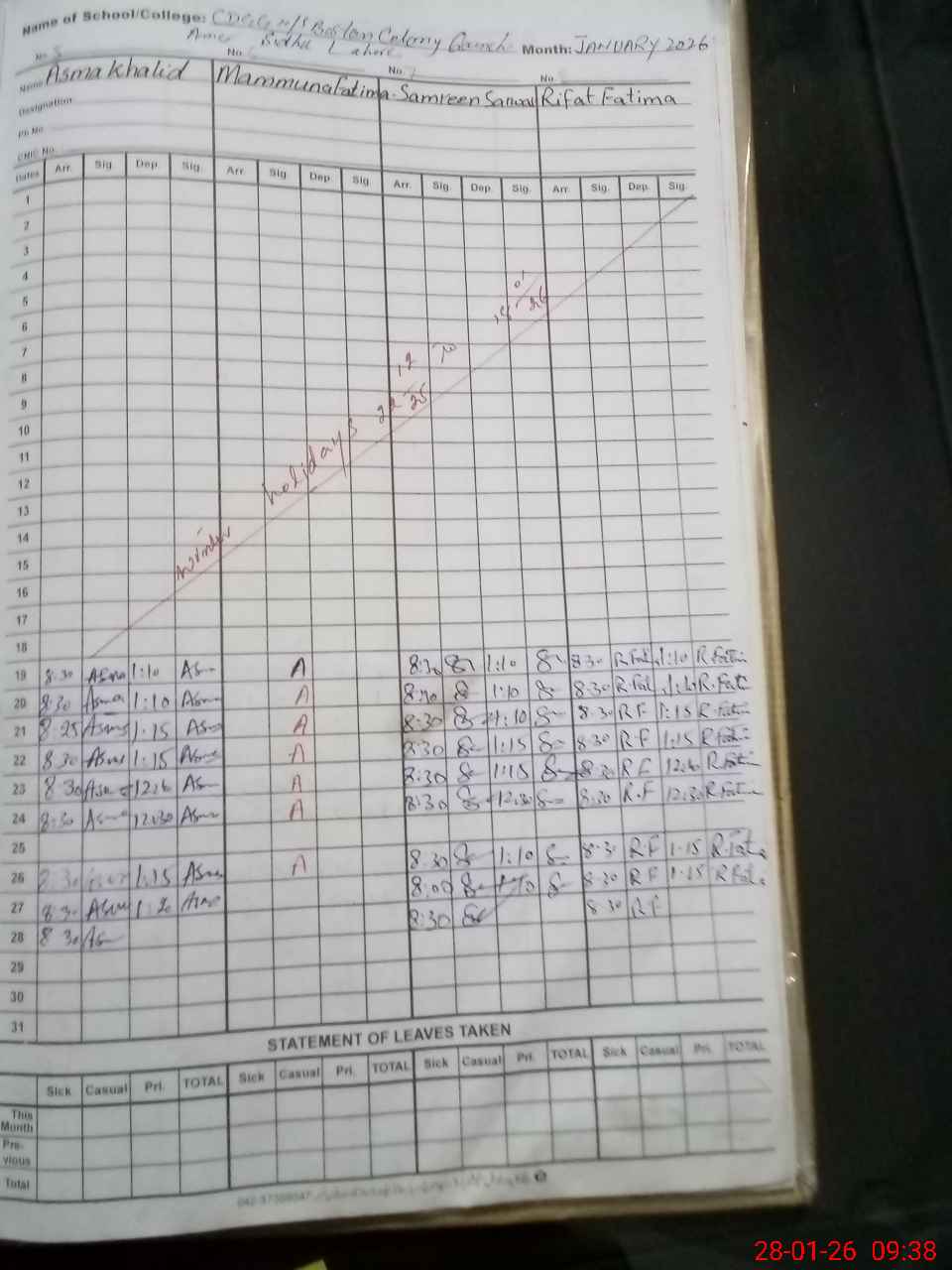 | 35**** | Ma**** Fa**** | SSE Physics/Maths | Contract | 0 | 0 | 31 | 0 | 0 | 0 | 0 | 0 | 0 | Absent (Un-Authorized) |