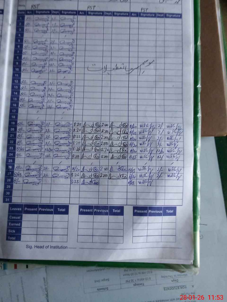 | CNIC | Full Name | Designation | R/C | Absence During Last Calender Month |