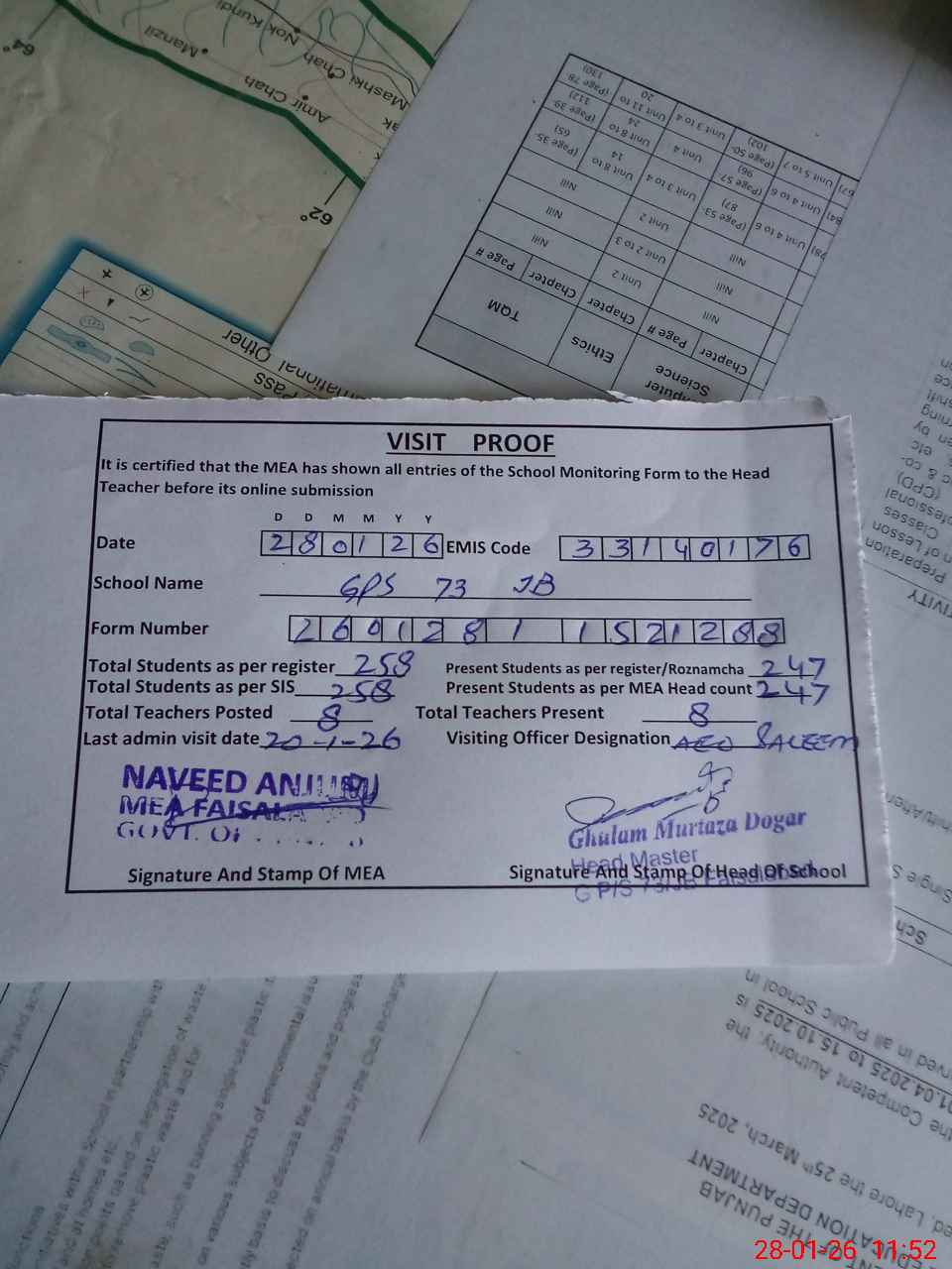 | Attendance Register | Head Teacher | MEA with School | Visit Proof |