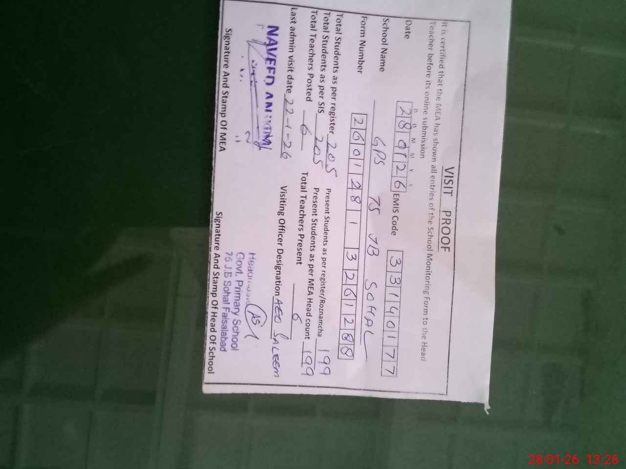 | EMIS Code: 33140177 | Name of School: GPS CHAK 75 JB SOHAL | |||