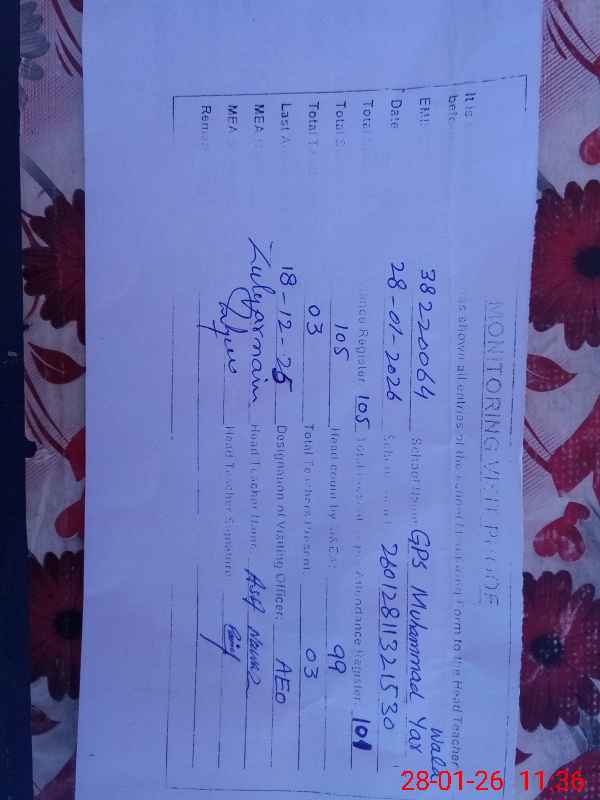 | EMIS Code: 38220064 | Name of School: GPS MUHAMMAD YAR WALA | |||