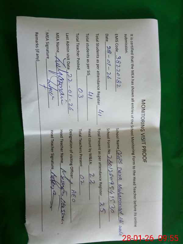 | EMIS Code: 38220182 | Name of School: GGPS DERA MUHAMMAD ALI WALA | |||