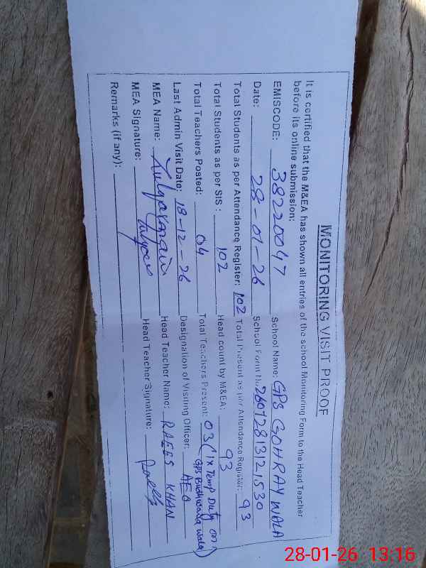 | EMIS Code: 38220047 | Name of School: GPS GOHRAY WALA | |||