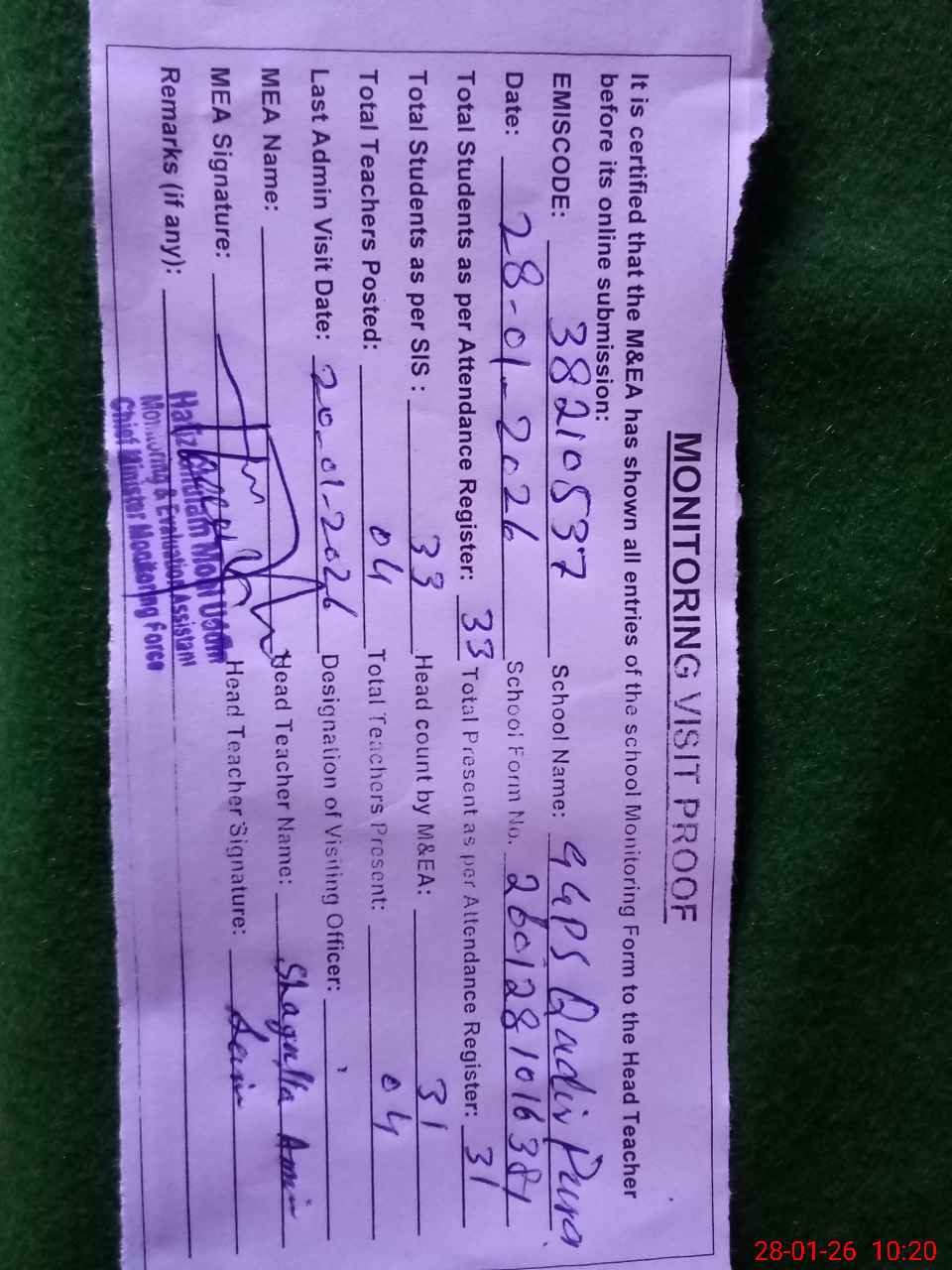 | EMIS Code: 38210537 | Name of School: GGPS QADIR PURA KHUSHAB | |||