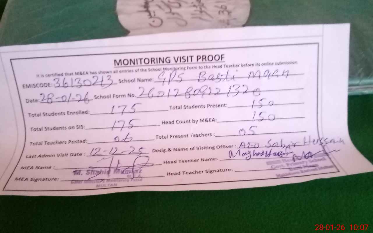 | District: MULTAN | Tehsil: MULTAN SADAR | Markaz: MAKHDOOM RASHEED - MALE | Level: Primary | |